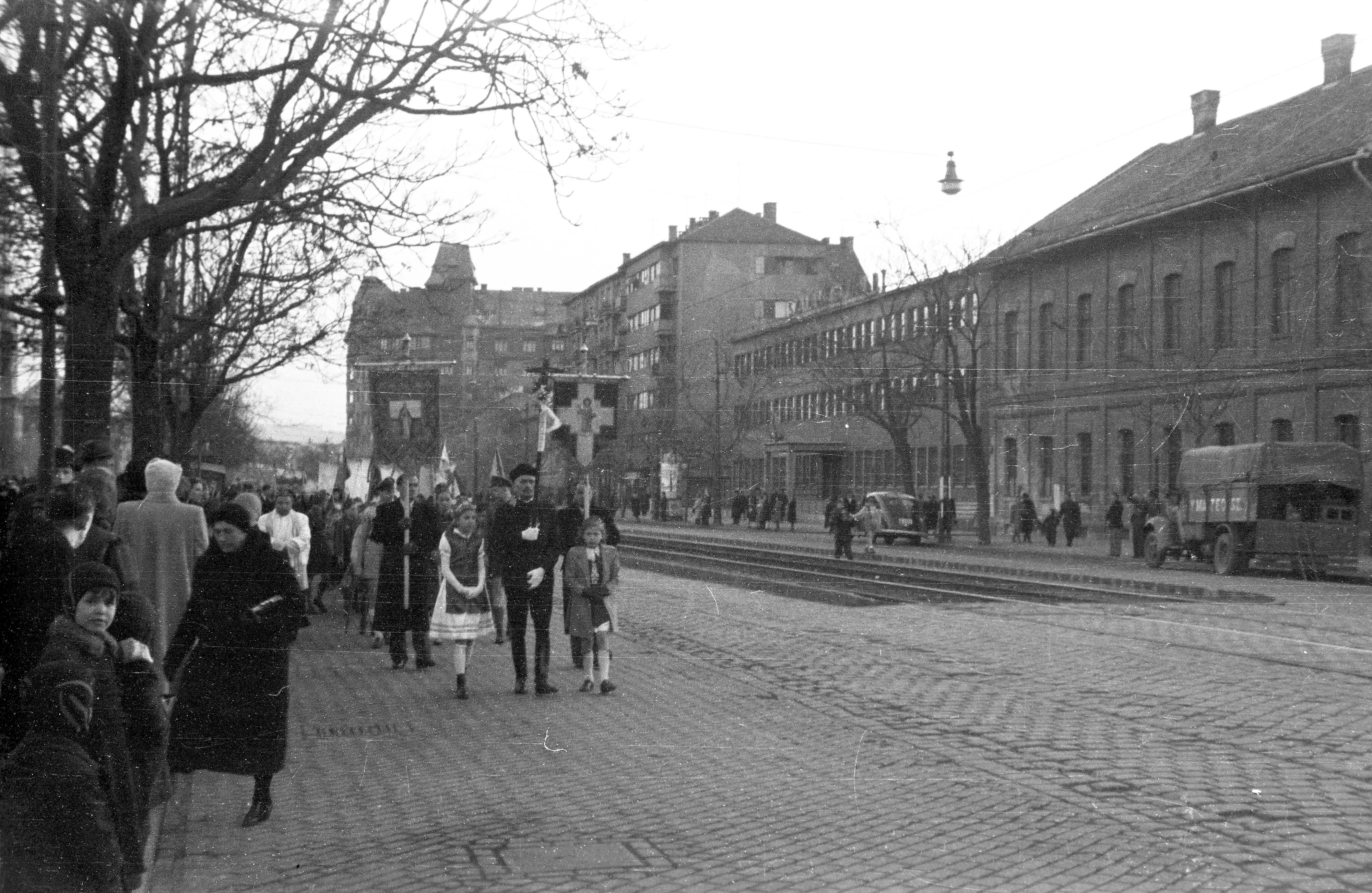BudapestXIII. kerület1949, Váci út, Húsvéti feltámadási körmenet a Ferdinánd (Lehel) térnélOldal támogatásaLeírásAdatlapKapcsolódó